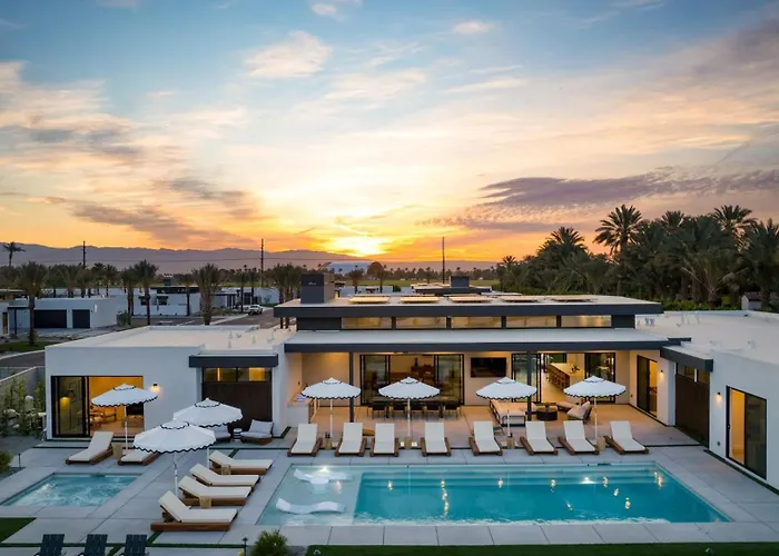 De gesitueerde in La Quinta Polo Villa Trio Sleeps 52 3 Homes 20 Bdrs La Quinta ligt op 19 minuten loopafstand van Empire Polo Club en nodigt gasten uit om toeristische bestemmingen te verkennen.